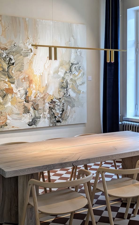 The most excuisite meeting room in Ekenäs, beautifully curated with furniture from S-Trä, Made by Choice and Decolight, complemented by art from Panu Ruotsalo.